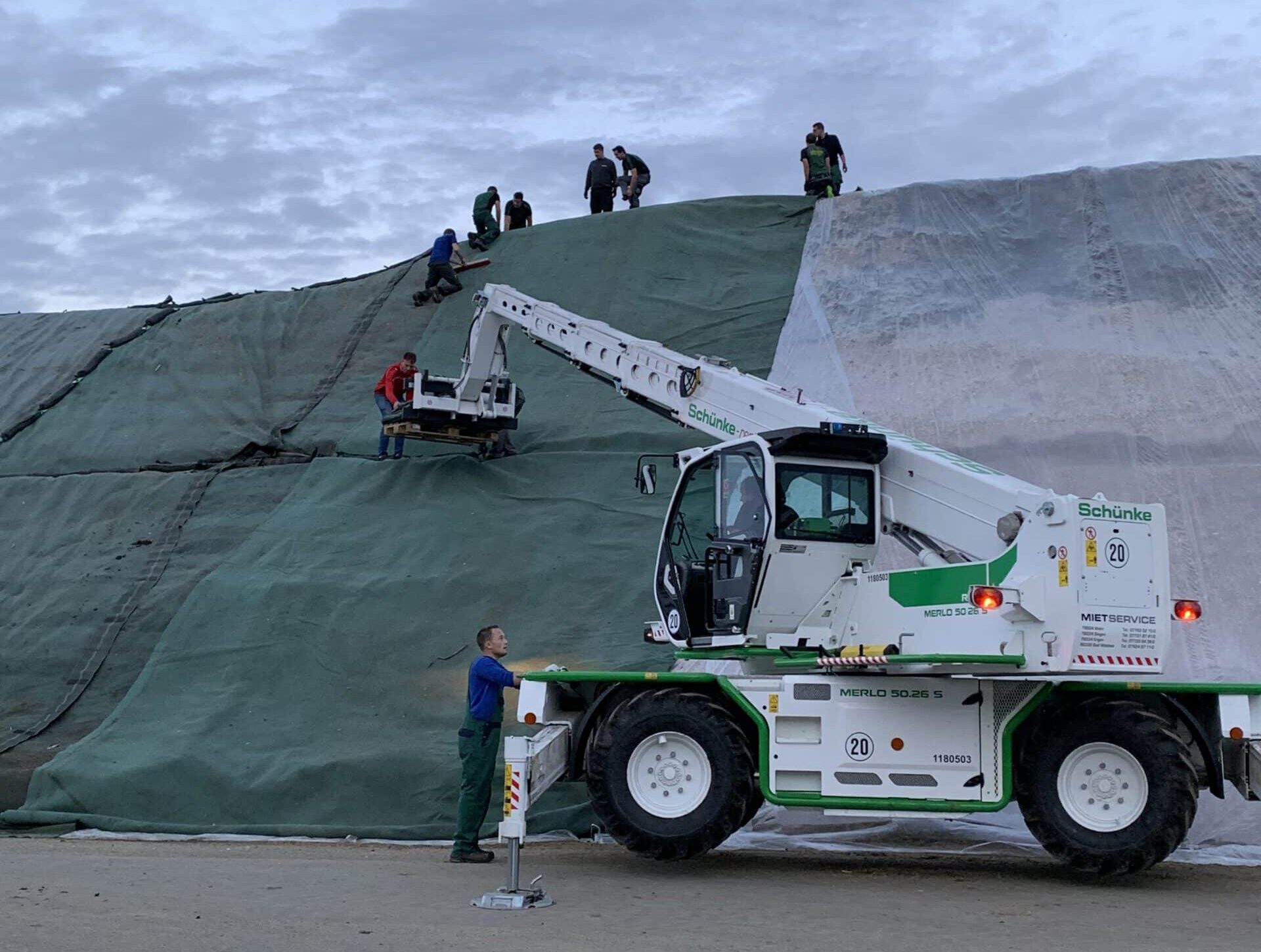 wie man auf dem Foto vom Silo abdecken sieht gehört nicht nur das Schlepper fahren dazu, sondern unser Team ist auch bei den unliebsamen Arbeiten am Start