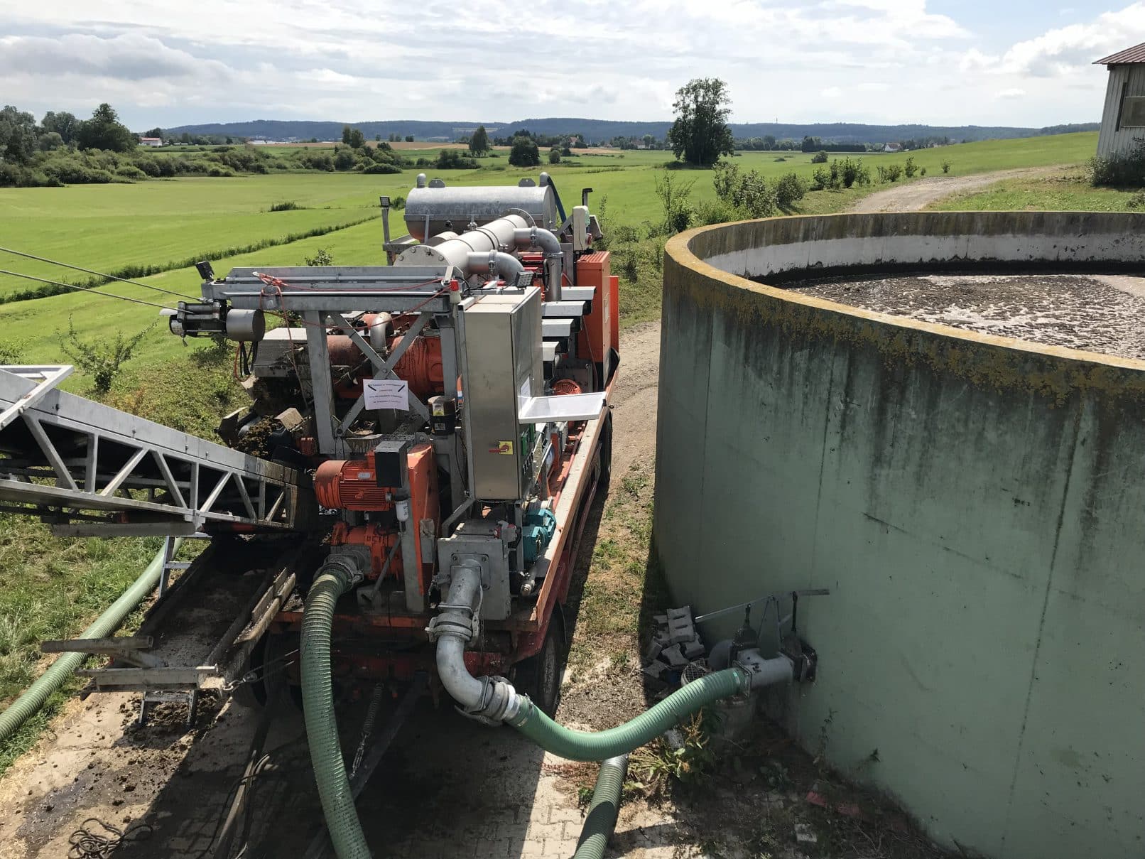 Wir bereiten Ihre Gülle mittels Großseparatoren bei Ihnen vor Ort auf! Der Feststoffanteil wird so transportfähig und kann als Rohstoff in Biogasanlagen eingebracht werden, der Flüssiganteil ist nach der Separation ideal zur Ausbringung als Dünger für Grünland. Die Nährstoffe bleiben nicht an den Pflanzen haften, Streifenablage wird vermieden, so kann die Gülle direkt vom Boden aufgenommen werden.
